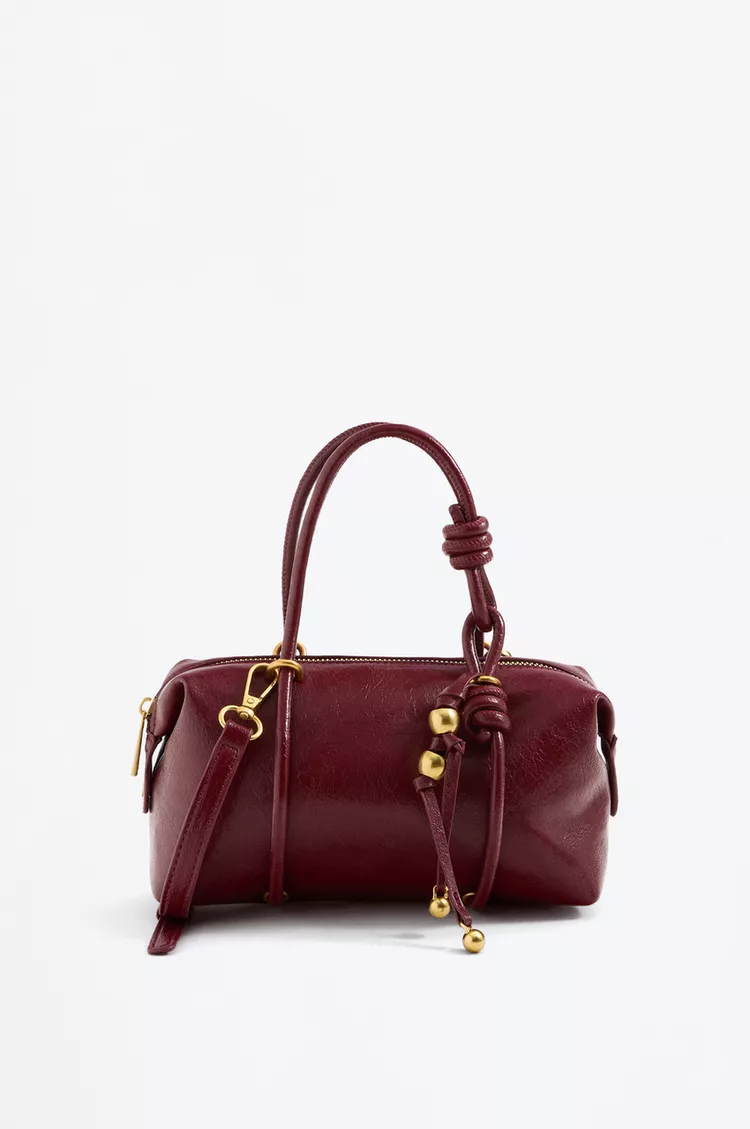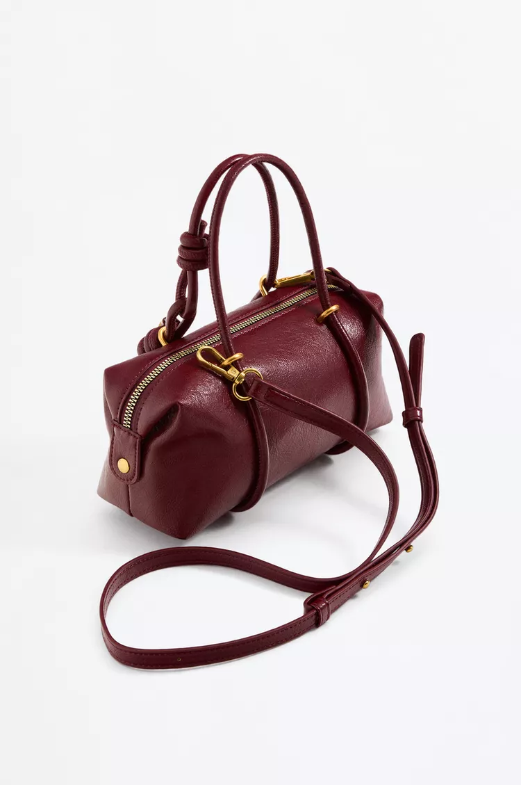 Bossa tipus bowling. Disponible en diversos colors. Doble nansa de mà i nansa tipus bandolera extraïble. Tancament mitjançant cremalleres laterals.