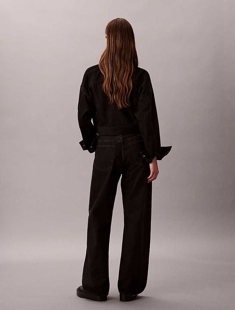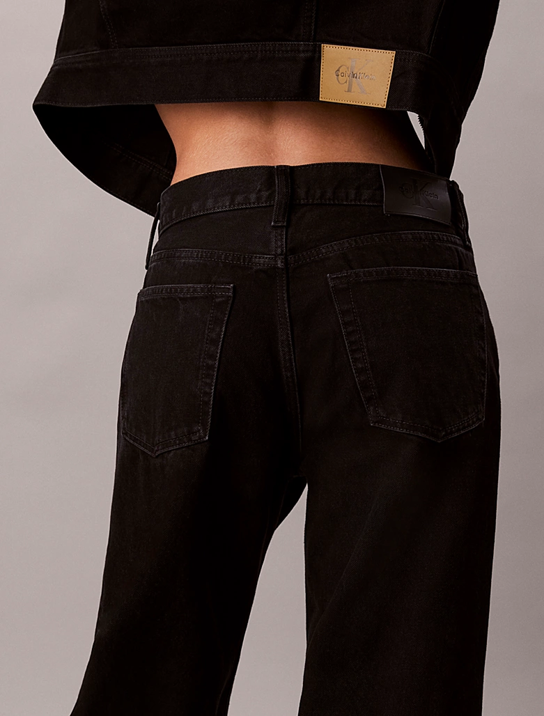 Pantalons texans llargs de color negre amb tall recte. Disseny de quatre butxaques amb tancament frontal mitjançant cremallera i botó.